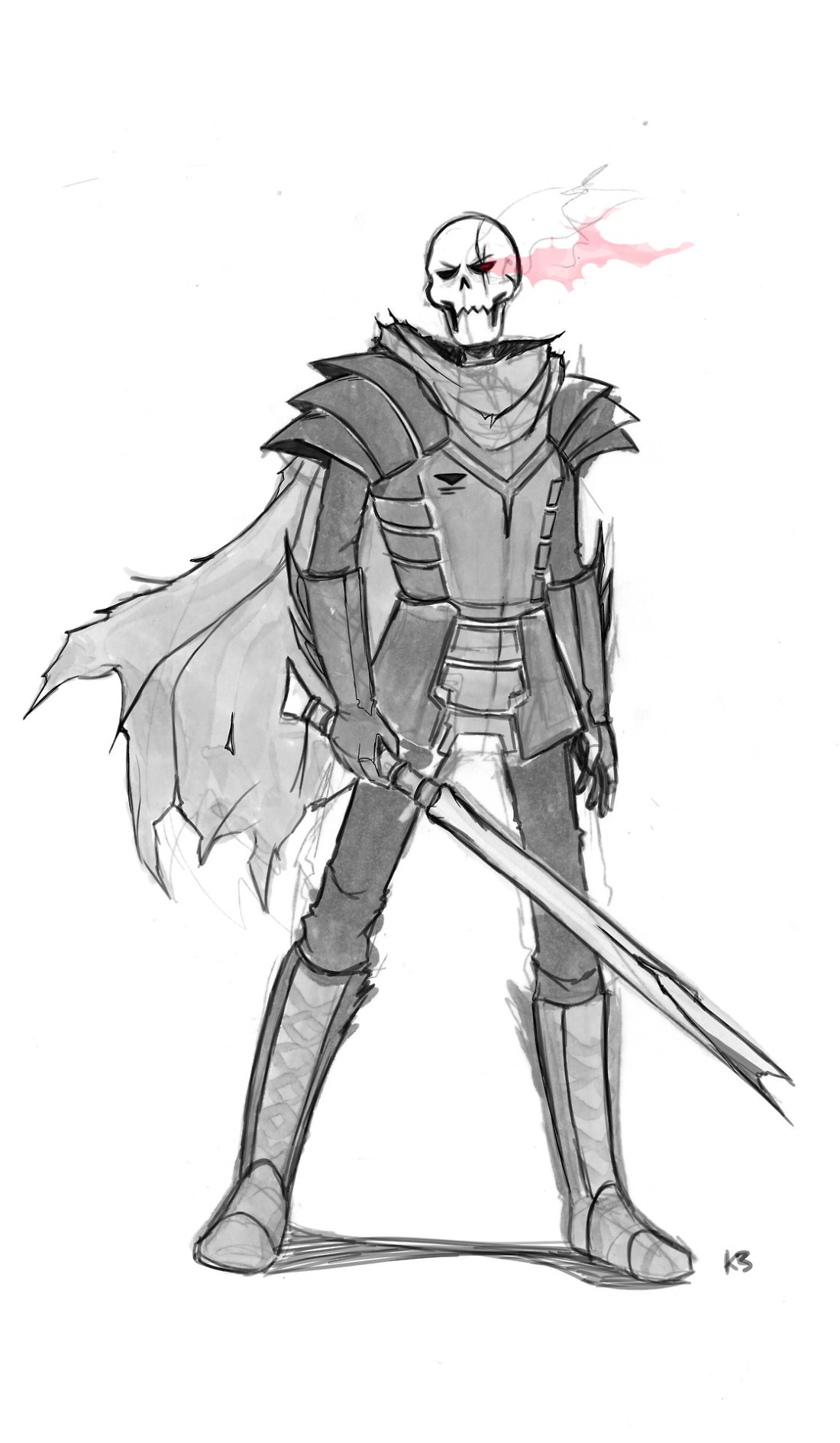 Inktober 6 today’s word sword. Underfell Papy in armor with a bonesword