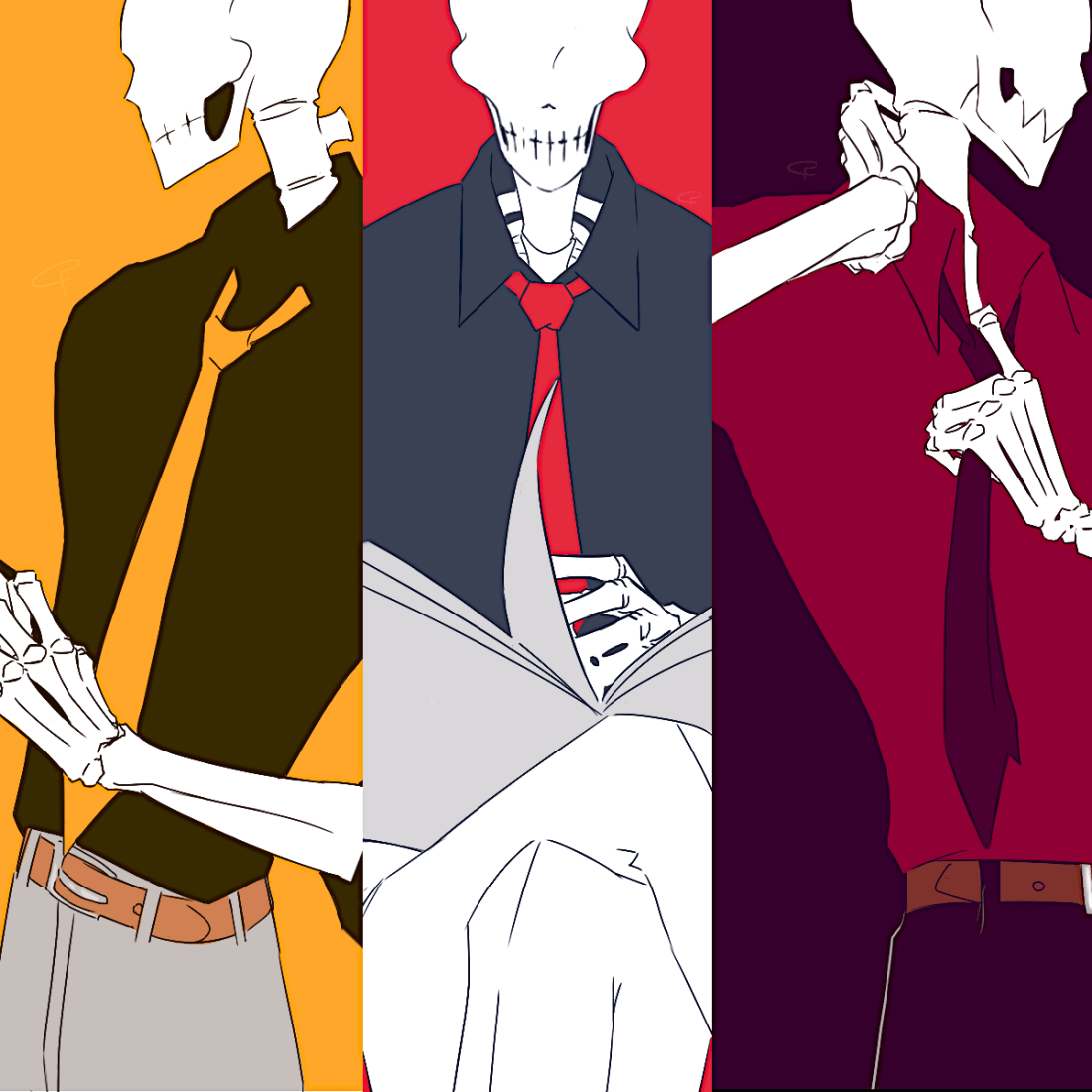 EHHHHHHH :000 Maybe..I should draw Grillby instead of these..‘Papyrus’es. Grillby is already wearing suit, as you know.