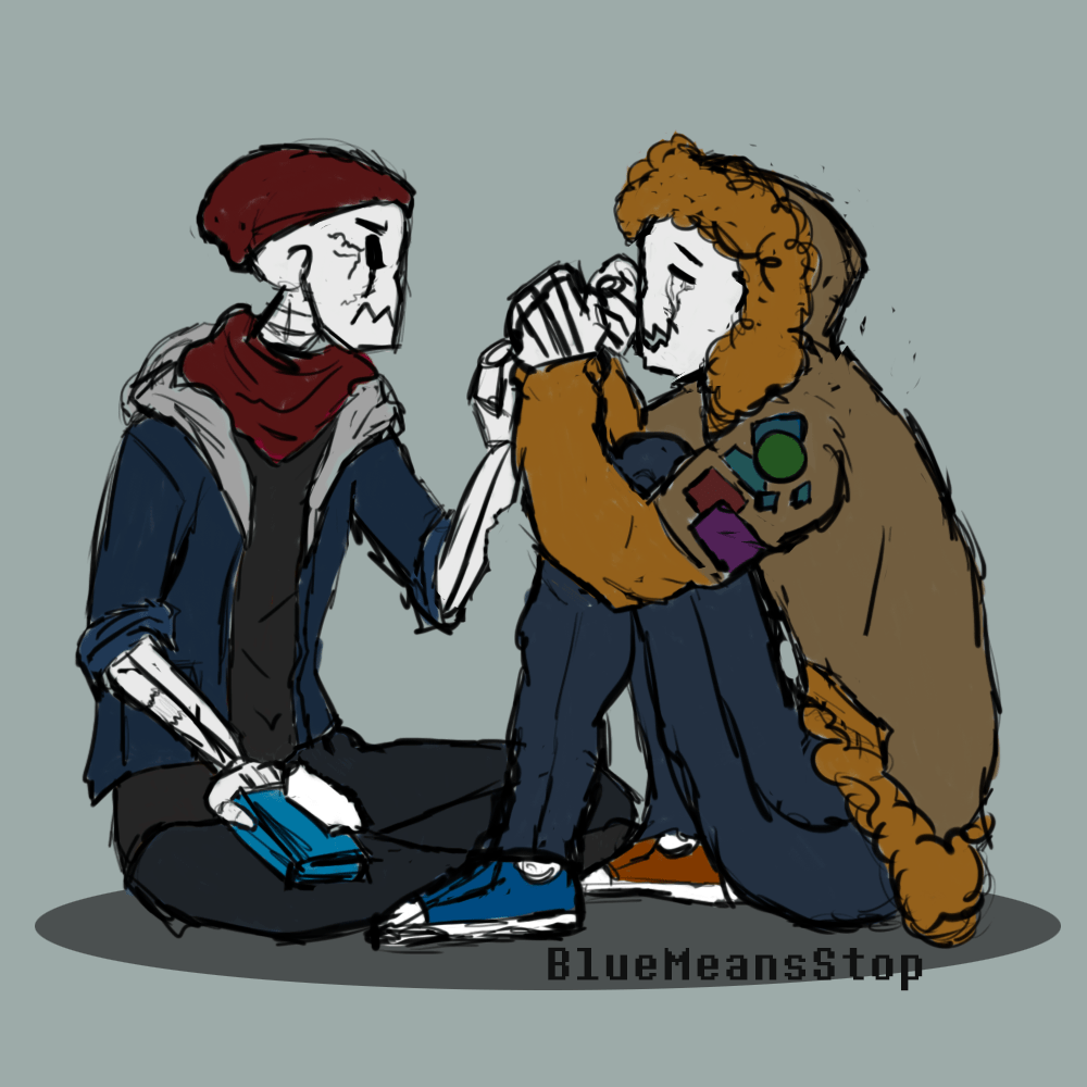 Angel looking out for his baby bones of a (half) sibling, Peanut. A real quick scribble and color of of my fan kids. I know I haven’t written much for Angel, but the Edgelord Jr is still a bit of WIP. But he totally has a garage band, open and looking for members. Angel plays bass and he’s perfectly fine out of the limelight. Soft hearted artist boy who plays a guitar. He’s a walking cliche if I ever saw one and I love him so much.