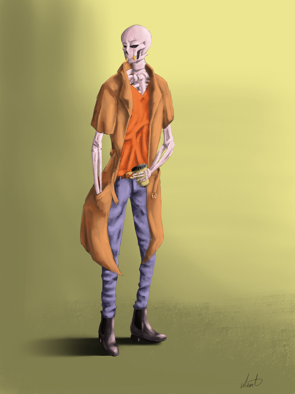 This is a piece I’m gonna include in my digital portfolio as part of my character designs for the “skeletons in life” project. I’m not brave enough to try backgrounds at the moment but in time I will