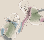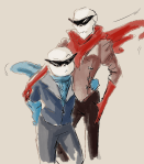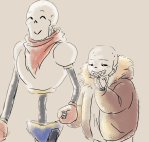 3. Honeymustard: Paps wants to protect the Sans, Red enjoys the hugs of every Pap. And as much as Red is blushy and soft, he only does that around the skeletons he likes, otherwise he is tough and competent and very threatening.