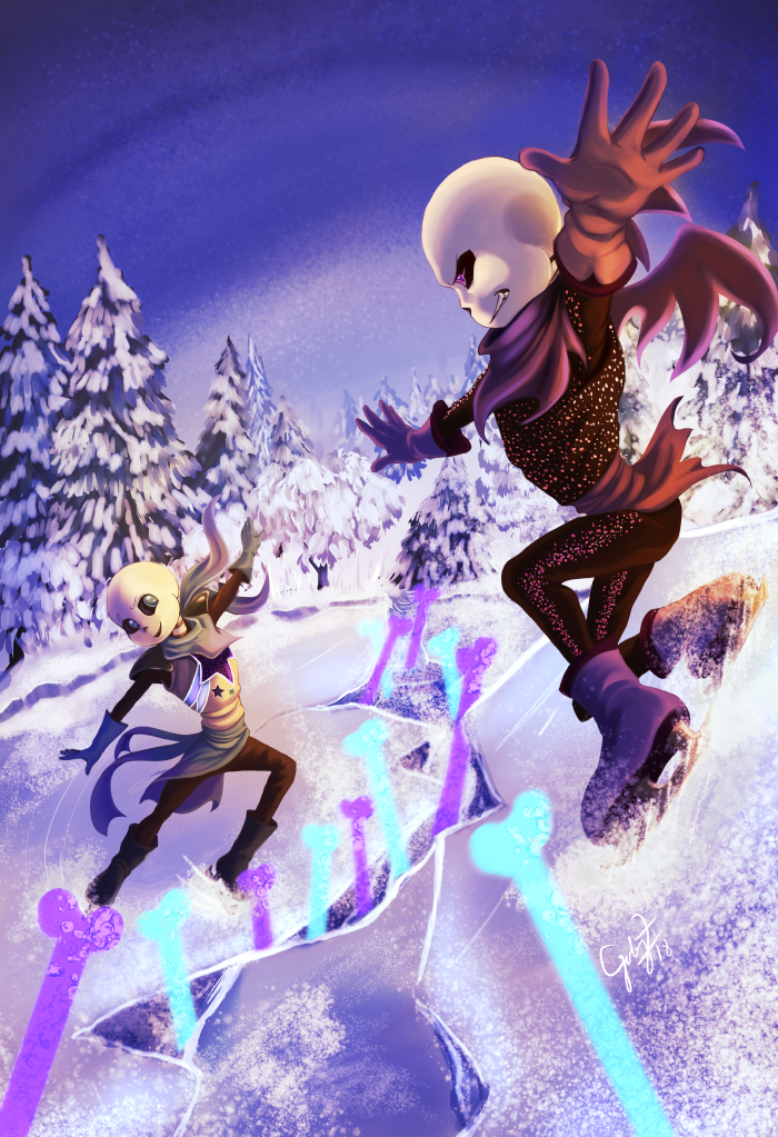 I’m your Secret Santa! You requested Blue and Black in a ice skating competition and … yeah, this is not your regular ice skating … competition. *Ahem* I just figured that they both were the type that would like a more extreme version of one. Hope you like it! 😀