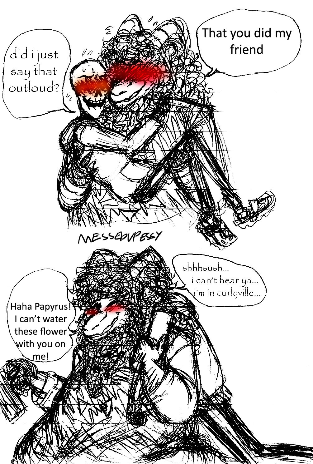Anyhow I like how these turned out, they are hella cute! just some anatomy here and there that turned out faulty, like Fluffy should be a bit bigger at the lower one but the page ended like frikking always so not much I can change about that now, I really like Fluffy’s hand in the second one tho, the one he is grabbing Stretch’s arm with, like how his face and hair turned out too in both, I think Fluffy might need to get a bit taller tho, as currently he is the same height as UT Asgore which is 8’6 aka 259 cm without the horns, just a little tho like maybe 8’8 aka 264 cm, so that he is even taller than Stretch who is 7’3 aka 221 cm while not slouching, not sure yet tho