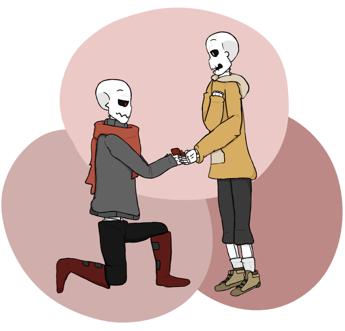 Pushing aside his qualms, Edge dropped to his knee, the corners of his mouth turning up at the way Stretch’s eye sockets went wide. Hands shaking, he withdrew the box from his pocket, opening it to reveal the pale gleaming ring.