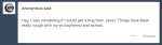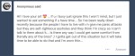 Anon 4: Ex’s huh, yeah thats a rabbit hole that no one enjoys going down. Don’t let the guy bother you, there was a reason you broke up and he should know it! Hope school get easier, please be sure to take care of yourself honey bun!