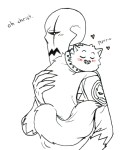 Slowly, Rus walked in, setting aside the apology gift, and he laid down on the bed. Carefully, he pressed against Edge’s back, looping an arm over Edge’s waist. He kissed the back of Edge’s skull. “bad day?” he asked softly, though the answer was obvious. Edge nodded silently, still cuddling the cat. “i’m sorry,” he whispered. Edge didn’t say anything, but Rus felt him start to relax a little.