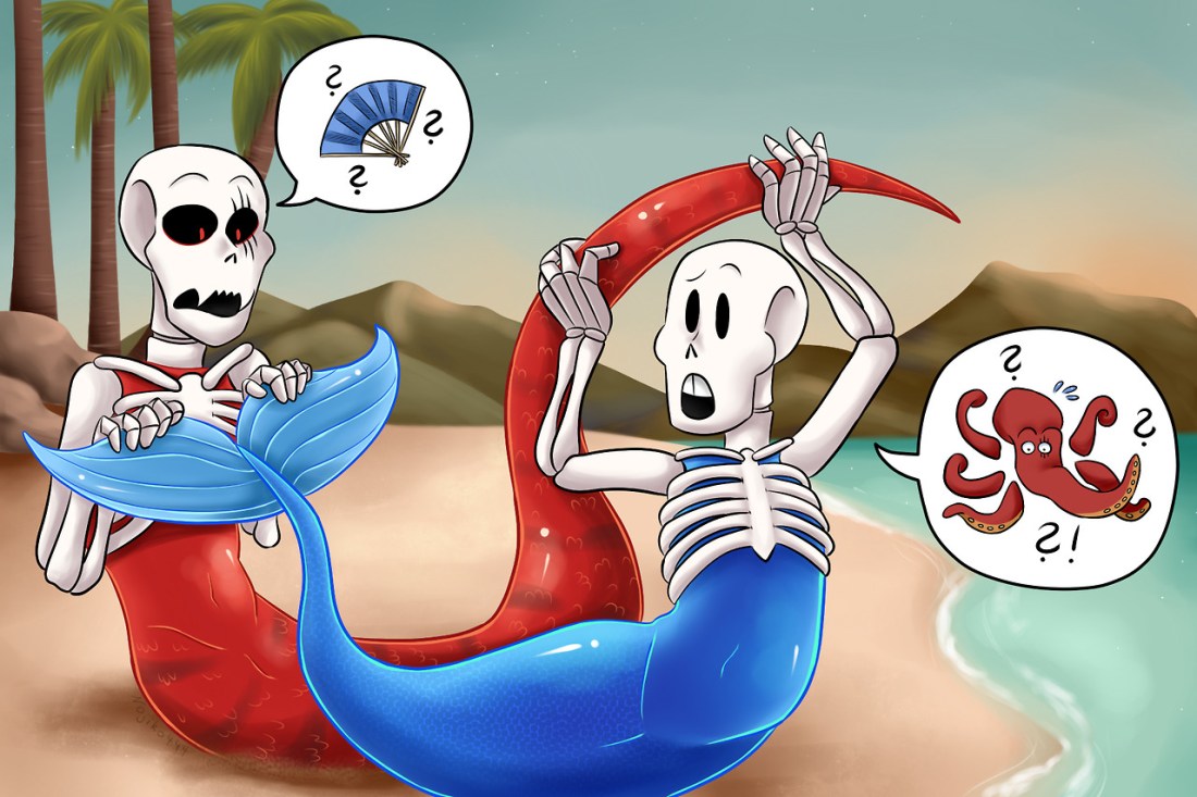 I dunno were this idea came from, but suddenly I thought “Would a lamia think a mermaid fin is a fan? And would a mermaid think, that a lamia is a disabled octopus?”