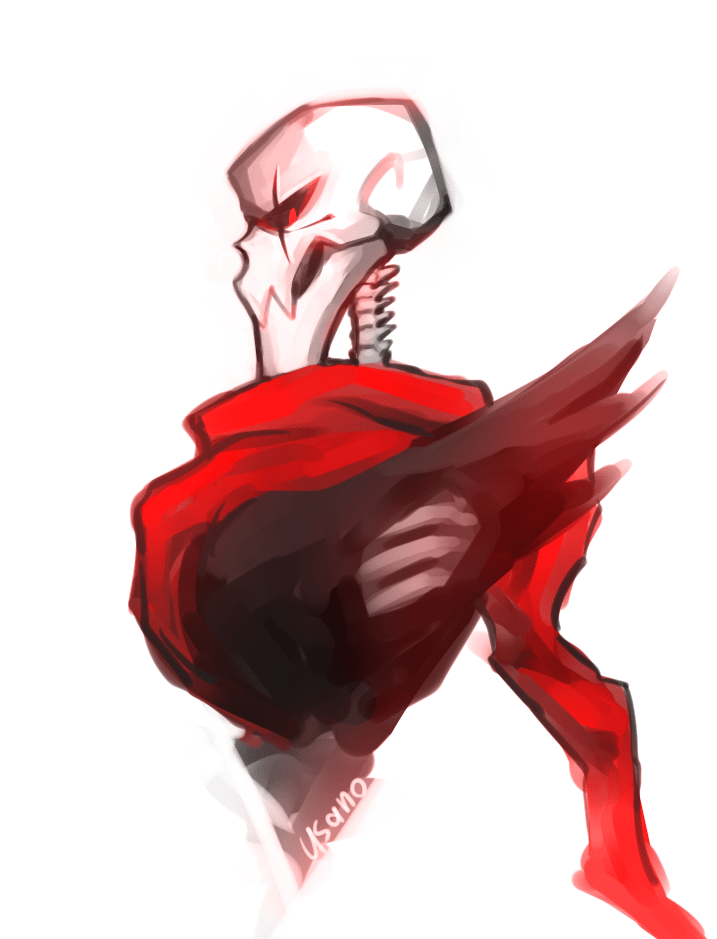 I tried to give a different vibe, for him. Sans’ magic is blue, airy… His combat style is all flamboyance, style, aesthetic. Elegance and swiftness. For Mutt, I tried to give the impression of a very brutal, powerful force, carefully contained and hidden.