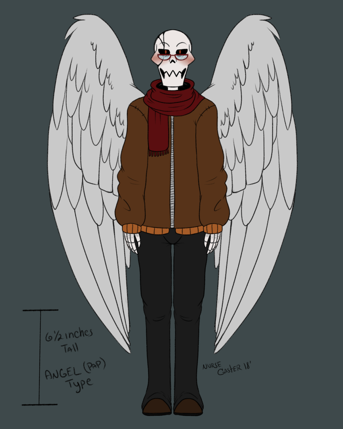 So @sansy-fresh was making a bunch of bittybones for people and I decided to make them a bitty right back. This here is an Angel Type bitty like my Dove. Angel types are rare high class bitties that are designed to look like other popular types but have much more mellow personalities (rich people don’t like being sassed to), they also can come in both sans and pap types. This one is obviously suppose to look like the boss type. He acquired his crack from his former owner, a young man who thought his living status symbol didn’t look badass enough. it compromised his vision so he has to now wear glasses.