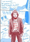 I really like how the grey on Sans hoodie turned out, thanks for me not drawing these in my sketchbook I can shade and stuff with my pen here and there which is fun, I still do it in my sketchbook but then when I scan it in there are lines and stuff that kinda ruins it a bit, anyhow! Sans hand turned out good too, his face also except for the part of his nose it turned out a bit flat or something dunno how to say it, just looks a bit weird, Edge’s eye turned out a bit weird too at first but I mostly fixed it, so yeah I like how this turned out too!