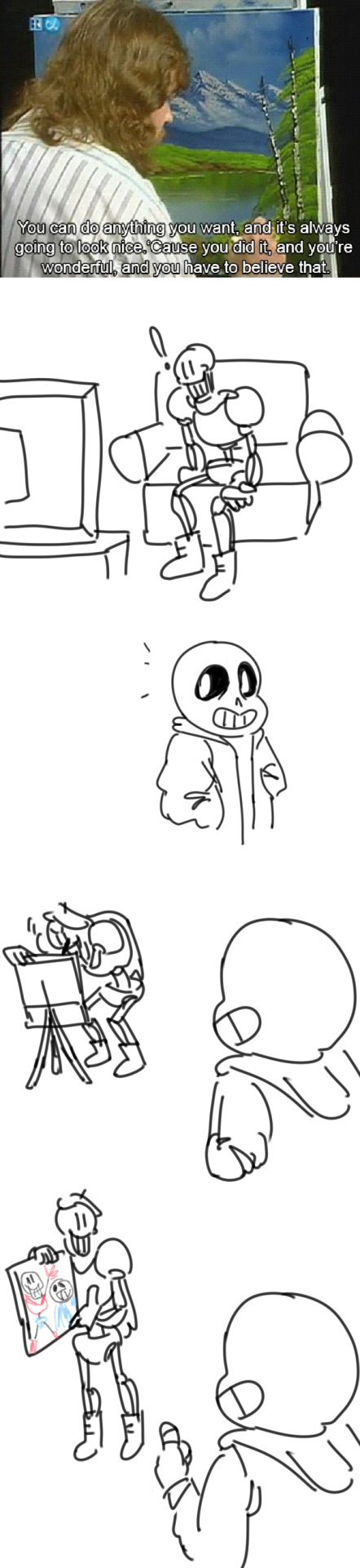 I love how you did the sunset! The image of their silhouettes is stellar. Also, I imagine doing a silhouette of Papyrus must be hard, so I have to say, I really admire how you did it. What a gift!
