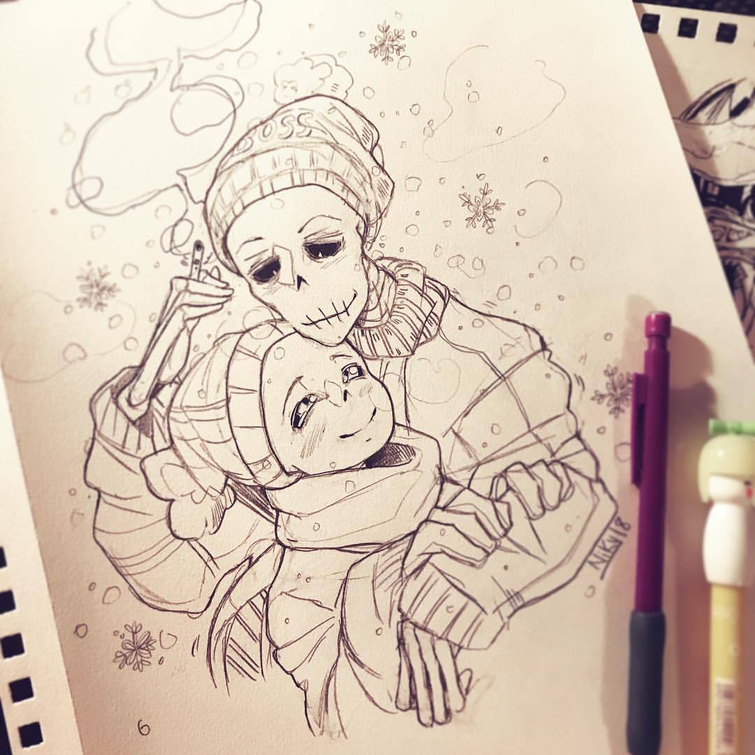 hoodie pulled up and Edge was very rigid, his shoulders tensed. Slim and Papyrus