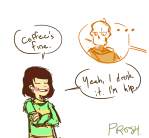 “blue nO THERE’S A NO COFFEE FOR CHARA SIGN ON THE FRIDGE FOR A REASON–”