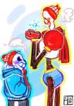 Another old TraverseTale pic, of a young Hobb and his older brother who I have nicknamed Knight, as in this AU Papyrus is the older brother, or should I say… was pfftt, because I can! Anyhow this was pretty much how these two were when Hobb was little, as he was one smart little kid who was constantly studying stuff while his older brother was out training to become a proper knight, which is why he is nicknamed Knight, but he was overly proud over his younger brothers smarts and took every chance he could to tell Hobb so, causing little Hobb to get embarrassed and telling his brother how silly he is and stuff because it is cute af <: