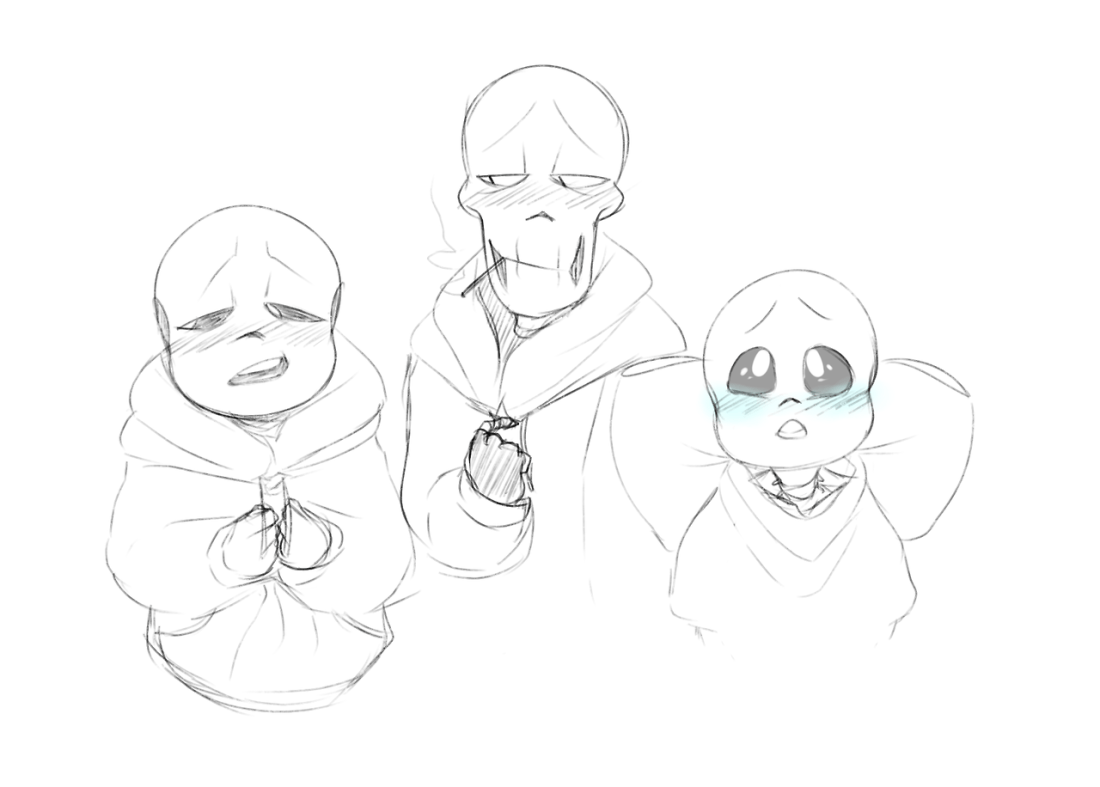 “huh.” Sans glanced over the three skeletons, deep in thought. Where Blue and Blackberry were practically brimming with excitement, Slim looked nervous, his head ducked and his shoulders slumped deep into his jacket. “well,” Sans said, strolling over to the sofa. “gotta marry blue. it’s not gay if you marry your pal, is it?”
